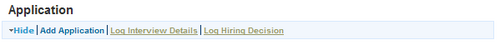In the person's record, click Application in the left menu to jump to the "Application" section of the record. Click Log Hiring Decision.