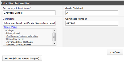 Only the Data Operations Manager can add new academic levels and certificates to the system (see Add an Academic Level or Add a Certificate).